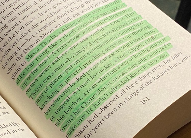 In Mejis though, back when Roland was young, time still had meaning. The complex plot of this novel is closely tied with the calendar; the young gunslingers-in-disguise are scheduled to stay at the Bar K for three months, Kissing Moon, Peddler’s Moon, and Huntress Moon. Everyone’s making plans and scheduling meetings in this story, strategizing in longer terms than we’ve seen any character do in the entire series so far. Up until now, none of them have had much time to stay in one place for three months, let alone plan that far ahead. Time actually matters in this book, in a way it never has before.