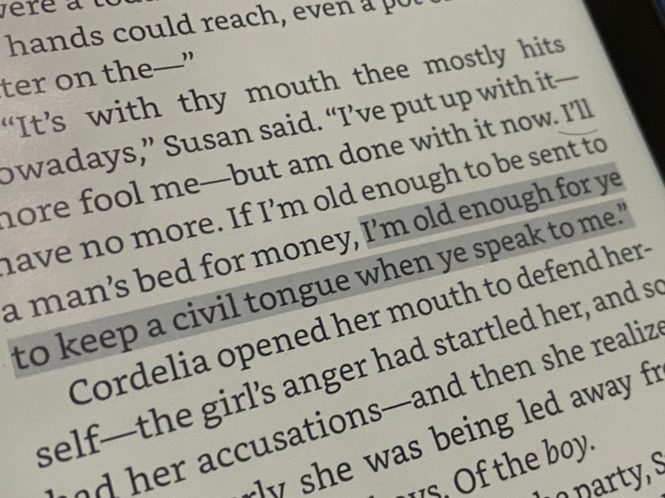 ”I’m old enough for ye to keep a civil tongue when ye speak to me.”